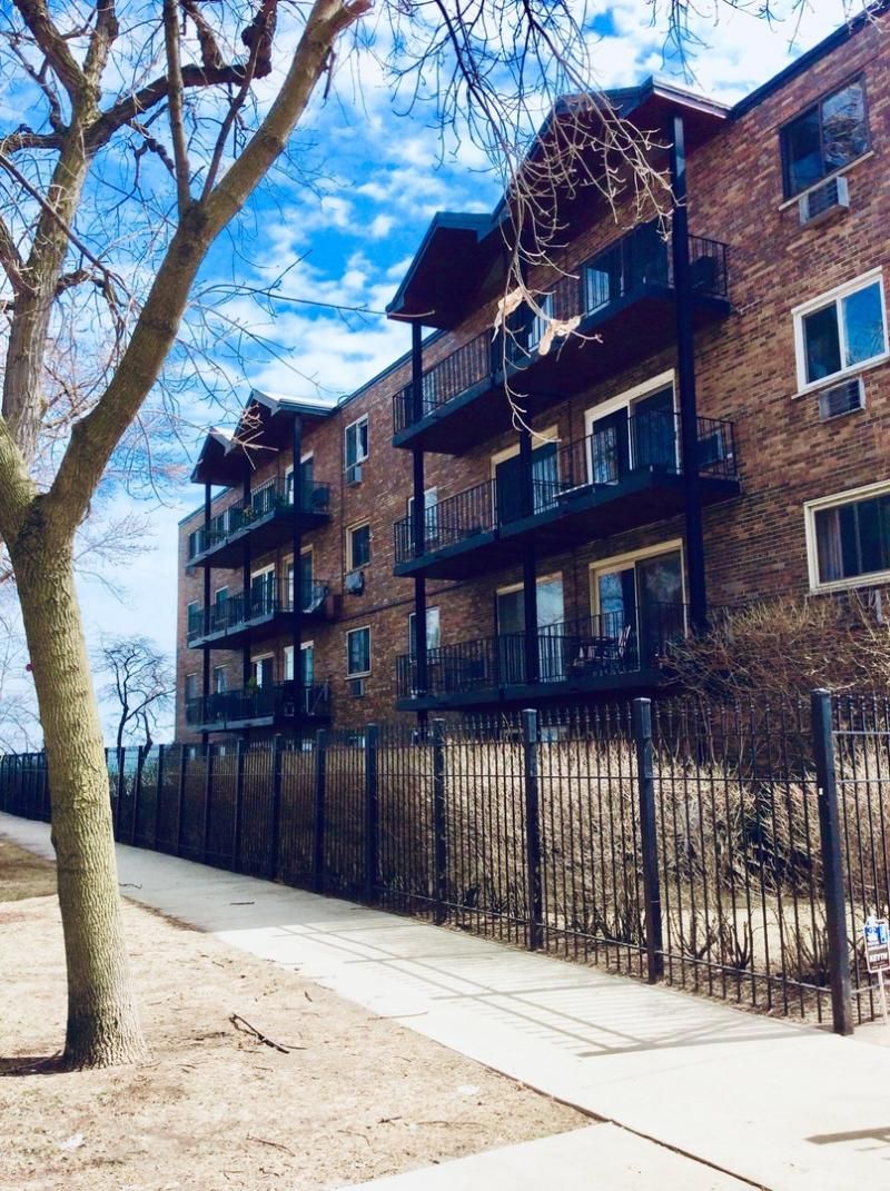 Roger Park Condo on the Lake Front. Separate entrance to this lake front 1 bedroom/1 bathroom spacious condo. Large living room/dining room with a cathedral ceilings and overhead windows for extra light. Balcony for your Lakeview pleasure. Original wooden Kitchen cabinets in pristine condition. Frig and hot water heater 2 yrs old. Quiet carpeted bedroom with extra closet in 2 hallways. Building also features storage lockers. 2 room bathroom with vanity storage. Exterior entry closet for maintance supplies. Parking is available on first come basis.