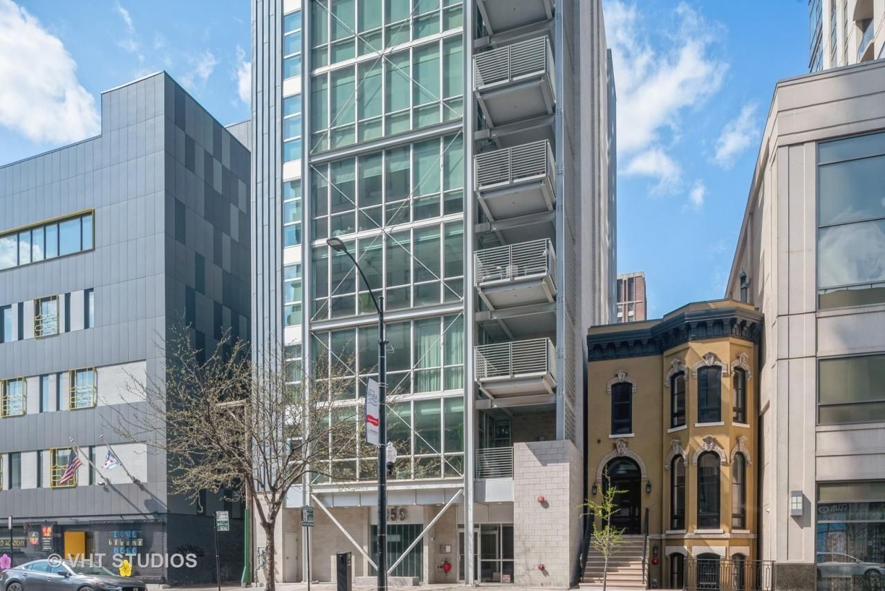 Rarely available! Spacious one bedroom (900 sf) with huge private terrace in boutique elevator in prime River north location. High ceilings, concrete floors, open kitchen with island and high end appliances, in-unit laundry, central air, one garage space included with lift for a second car. Low monthly assessment! Real estate taxes do not include homeowners exemption but do include the amount for the garage space. Unique unit in a special building.