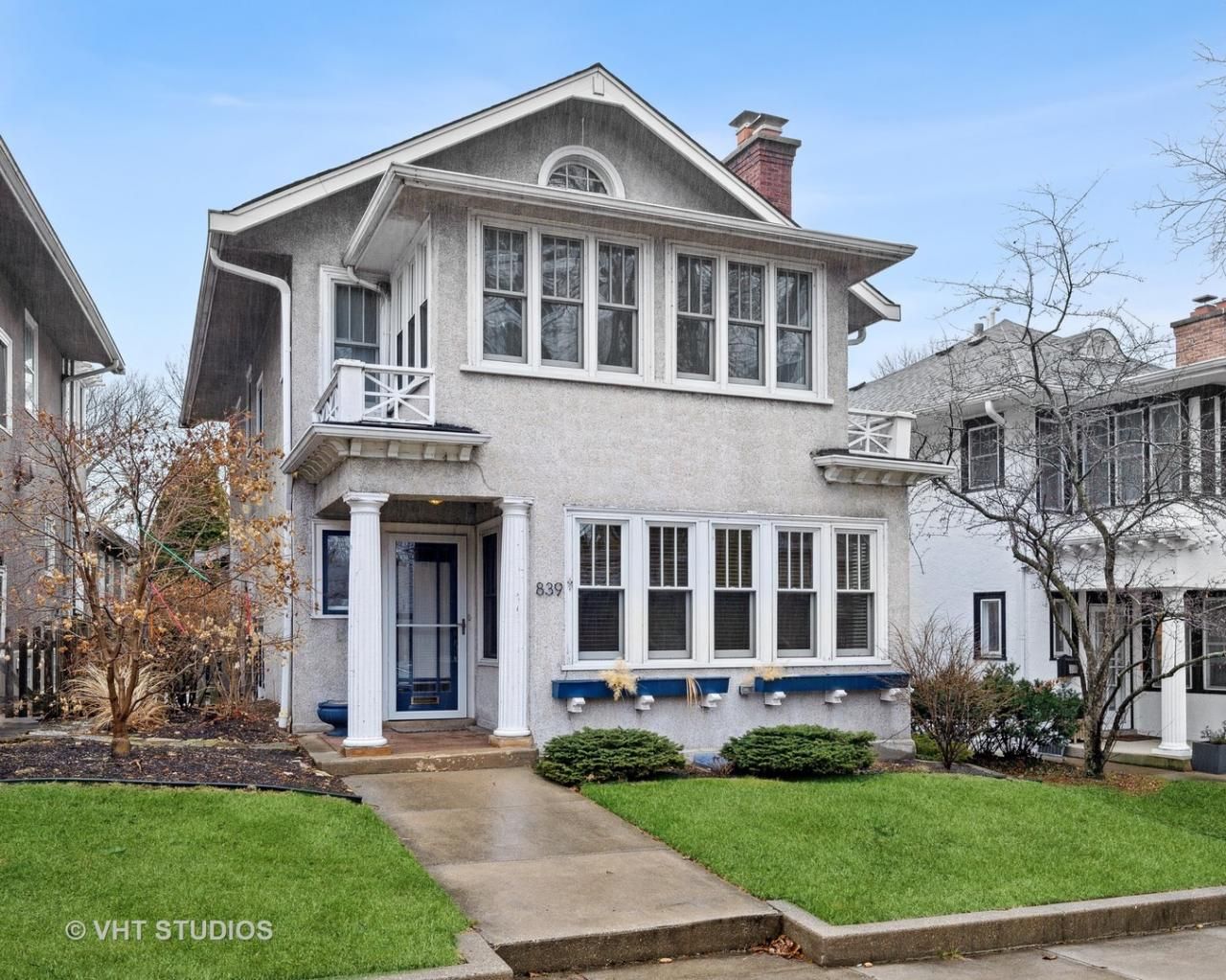 Rarely available! Charming and well maintained home (long time owner) on highly desired tree lined residential street in prime northeast Evanston location. Main floor has living room with fireplace, formal dining room, updated kitchen, breakfast room that overlooks backyard, and a powder room. Three bedrooms, sitting room/sunroom and full bathroom on second floor. Full basement with recreation room space, laundry, glass block windows and bathroom. Hardwood floors and lots of vintage details throughout. New Pella windows installed in 2014 and a new hot water boiler with expansion tank in 2015. House was rewired to add modern outlets and replace cloth wiring in 2011. Chimney rebuilt in 2013. The exterior stucco has been repaired and maintained. One car detached garage.