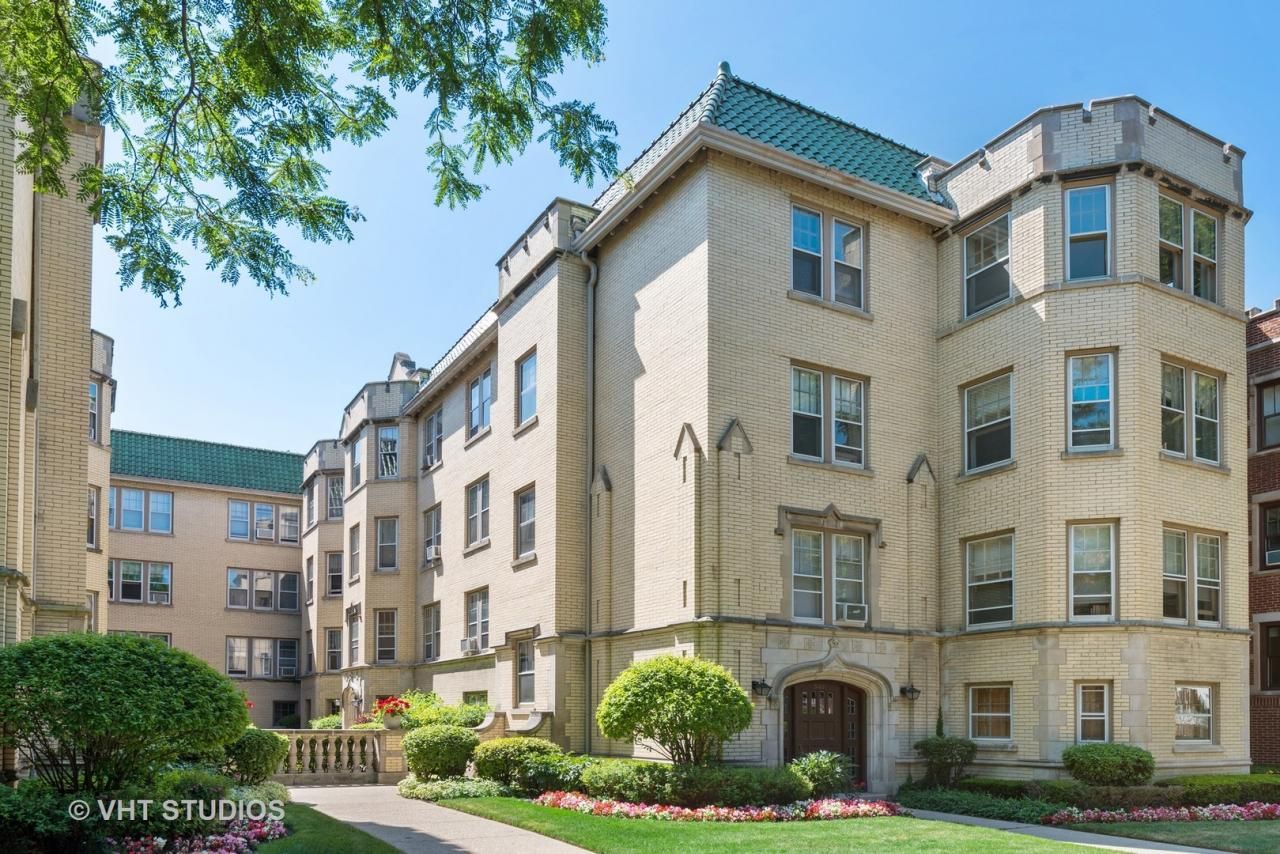 Sunny and quiet top floor unit in immaculate courtyard building just a block from the beach! Very spacious layout includes high ceilings, beautiful hardwood floors and good closet space. Vintage lovers will appreciate the built-in dining room cabinet, gorgeous solid wood doors, arched openings, large windows and original pantry in kitchen. Pets, rentals and in-unit laundry are allowed. Convenient laundry rooms in the building, bike storage and private storage included. Easy walk to beach, trains, restaurants, etc in leafy southeast Evanston!