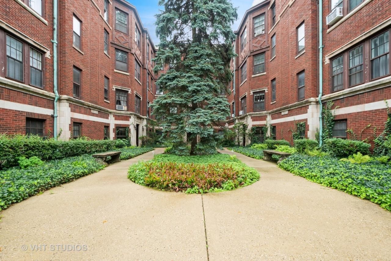 Spacious 2 bedroom 1 bath unit in the desirable Historic Landmark Oakton Gables building. Second floor unit features vintage details, high ceilings, refinished hardwood floors, and new paint throughout. Kitchen has new appliances and a new floor. New ceiling fan and large closets. Bright unit with east, west, and south exposure. Large storage space assigned to the unit. Laundry room in the building. In-unit laundry permitted with management approval. Waitlist for garage parking space. Professionally managed and well maintained building. Low monthly assessment includes heat. Vacant and easy to show! Convenient location near public transportation and lakefront parks.